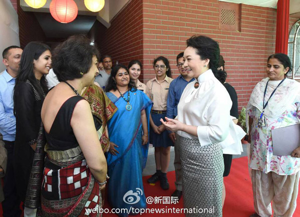 离别时,彭丽媛向校长表示感谢:“参观学校,给我留下非常美好的印象,我会永记心中,会永远记住孩子们的笑容。”她欢迎师生们多到中国走走看看:“我相信,只要踏上中国的土地,你们就会爱上中国。让我们一起把中印友好永远传承下去。”