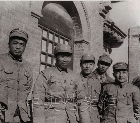1938年,邓小平与萧克、彭雪枫、朱德、彭德怀在山西洪洞县马牧村八路军总部的合影。