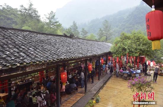 5月26日,在湖南张家界市武陵源区,来自新加坡的小伙杨庆春,以土家族婚俗迎娶张家界的土家阿妹刘海燕。新郎骑马,新娘坐轿,六乐合奏,极其热闹,吸引不少游客和当地群众“捧场”。吴勇兵 摄