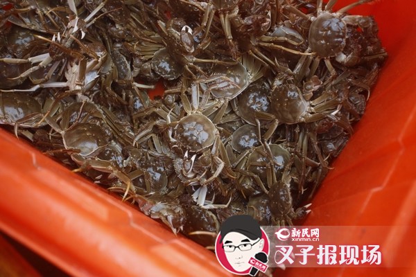 图说:2300吨蟹静候“吃货”。新民网记者 萧君玮 摄