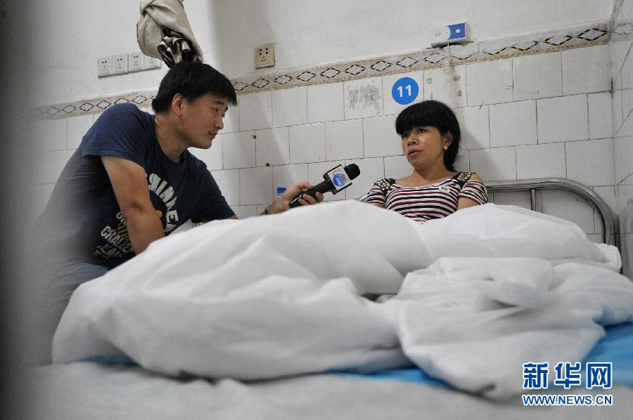 湖南醴陵花炮厂爆炸事故受伤者接受媒体采访(9月23日摄)。 9月22日15时许,位于湖南醴陵市浦口镇保丰村的南阳出口花炮厂发生爆炸事故,截至23日中午,爆炸事故的死亡人数上升至13人,另有1人失联,33人受伤。尽管事故原因仍在调查当中,但各种迹象显示,从事故发生到救援处置,都存在各种人为的隐患。花炮产业再次用生命敲响了安全生产的警钟。新华社记者 龙弘涛 摄
