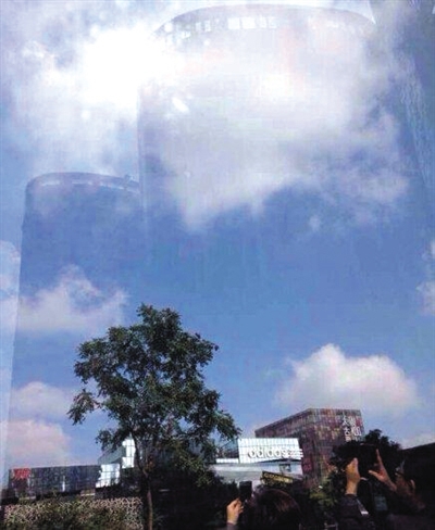 摄影师“行者橙子”说,要么是玻璃反光,要么是P的,图片中朝太古里的方向没玻璃,如果是反光,人像又不会都那么清楚,何况还有两个人朝着所谓“海市蜃楼”的方向,“一定是P的。”