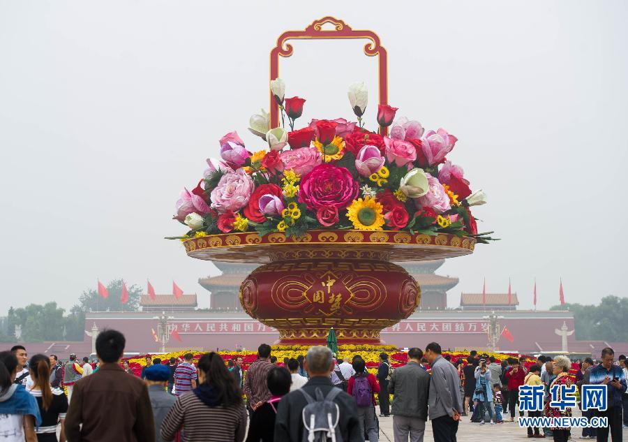 国庆花卉布置扮美首都:天安门大花篮亮相(组图)