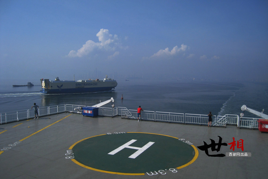 从西安出发,20天时间,他们搭伴骑行经过了渭南,三门峡,洛阳,郑州,开封,菏泽,曲阜,临沂,连云港,日照,青岛,烟台,大连,丹东,最终到达了目的地:朝鲜新义州。图为:乘客船过渤海,从烟台前往大连。