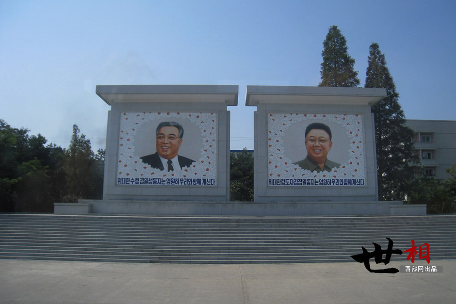 赵云飞每次骑行都是和院子要好的朋友一起,研究路线、攻略。“一路下来花了2000块,住宿是最大头。我们都不是吃货,不讲究吃喝,也不专门去看景点。”他说。图为:新义州街头领袖画像。