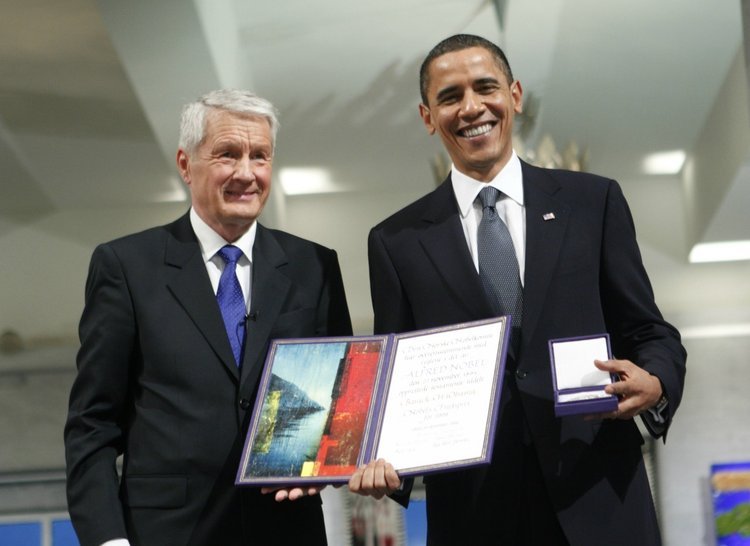 诺贝尔委员会说,授予奥巴马诺贝尔和平奖以表彰“其致力于加强国际外交和世界人民之间的合作所做的非凡努力。”