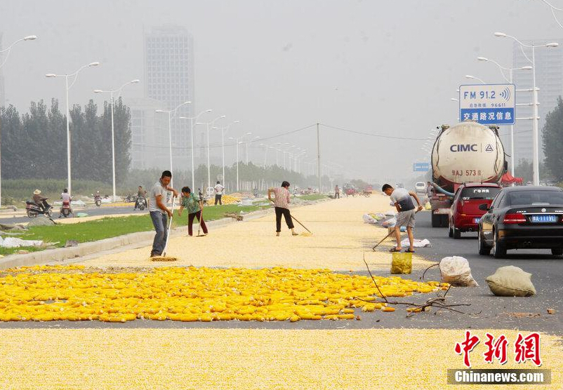 关键词:郑州黄金大道 公路两侧铺满玉米