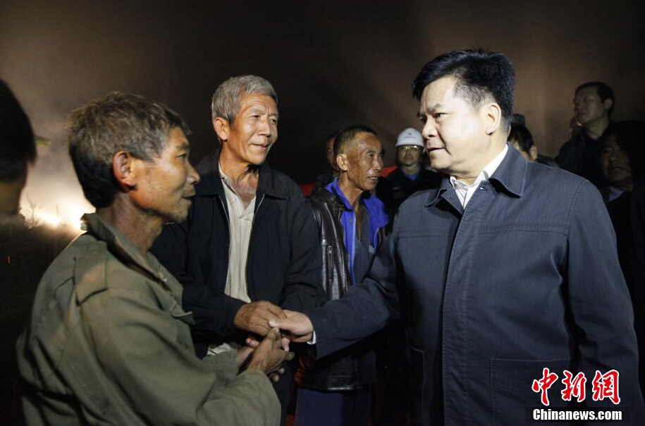 10月8日凌晨,云南省省长李纪恒抵达景谷县永平镇芒费村重灾区,慰问受灾民众,鼓励他们挺起脊梁,团结起来重建家园。7日21时49分在云南省普洱市景谷傣族彝族自治县发生6.6级左右地震,地震目前造成1死324伤。 任东 摄