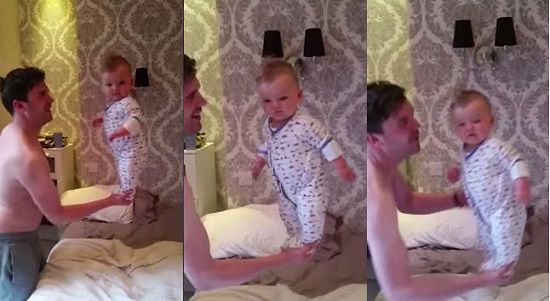 苏格兰6月大婴儿在爸爸单手掌上平稳站立(图)