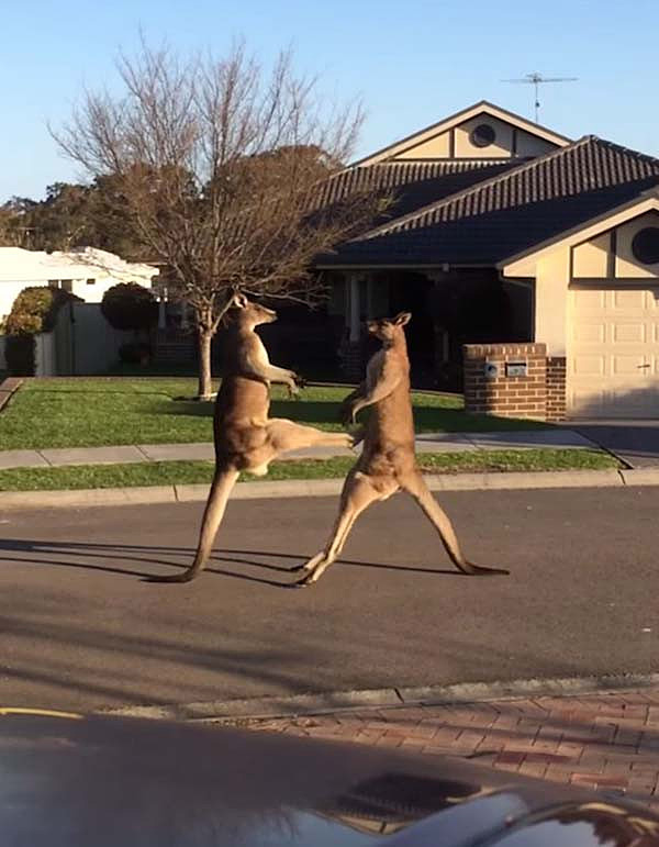 围观袋鼠当街打架: “无影脚”上阵 萌点十足(组图)