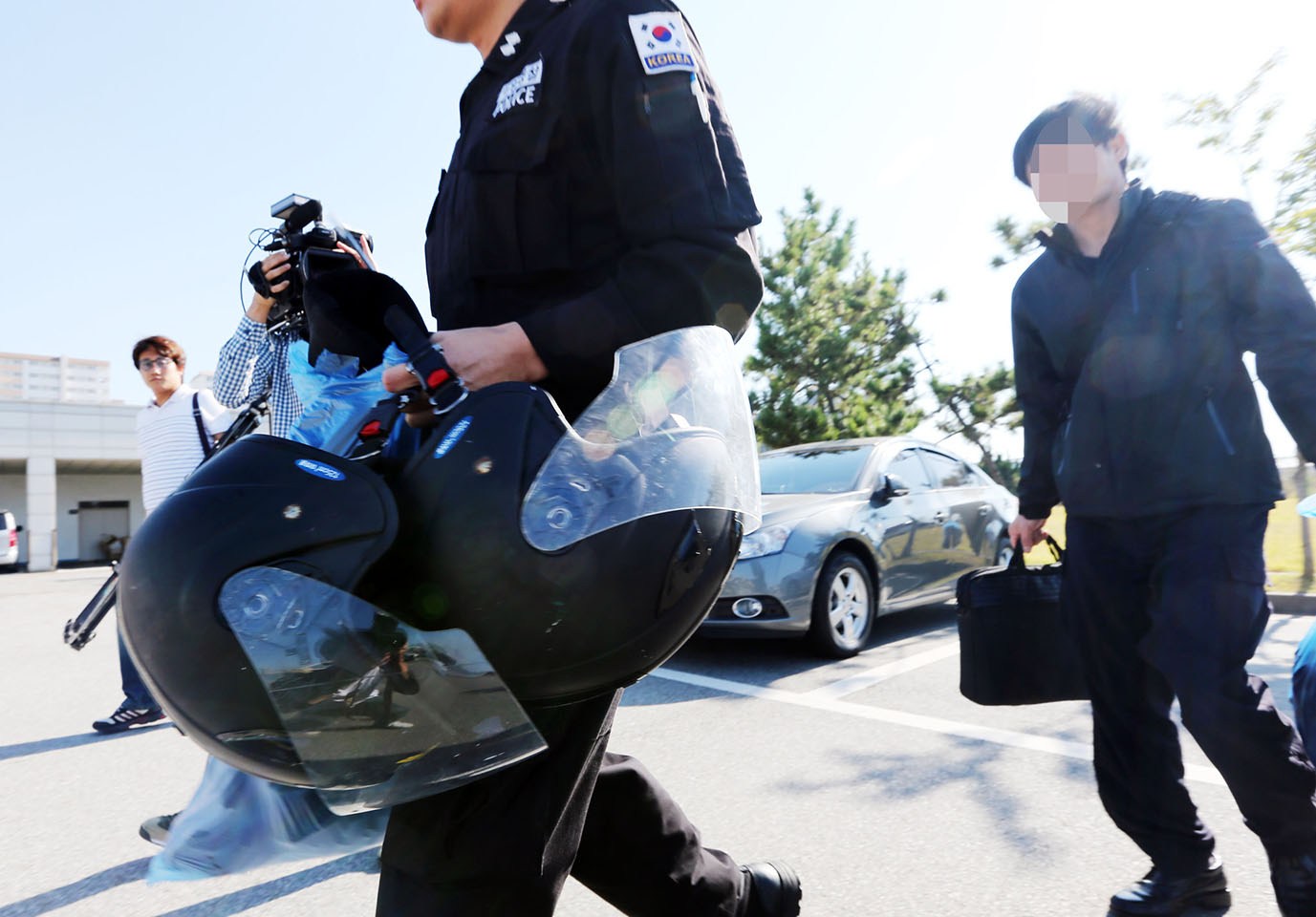 当地时间2014年10月10日,韩国木浦,涉事韩国海警归队。