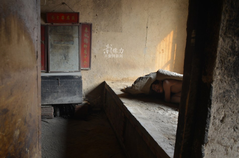 由于家庭贫困,车卫东父母没能及时给予治疗,慢慢的车卫众自理能力不断下降,吃喝拉撒便都在一张炕上才能解决。15年过去,车卫众精神恍惚,肌肉严重萎缩,已完全不能直立。齐鲁网记者 于鹏 摄