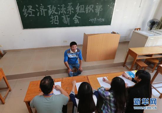 新华社照片,桂林(广西),2014年10月10日 爬着上大学 10月9日,小乐参加学校学生干部的面试。