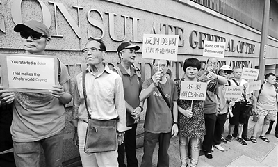 9日,数十名香港市民自发到美国驻港总领事馆,抗议美方介入香港事务。(图片来源:香港媒体)