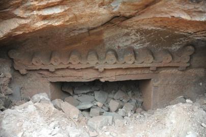 据了解,10月9日上午10点过,楼盘工地正在山坡处平整地基时,一辆挖掘机突然在山崖上挖出一庙宇式石刻建筑物,施工方负责人王波意识到可能是古墓,并立即命令该处停止施工,同时通知了110和三台县文物管理所。下午6点,在先期发现的古墓左侧50米处,挖掘机再次挖出一个黑深深的大窟窿,洞内幽深,隐约可见人工刻痕,施工方再次报警。