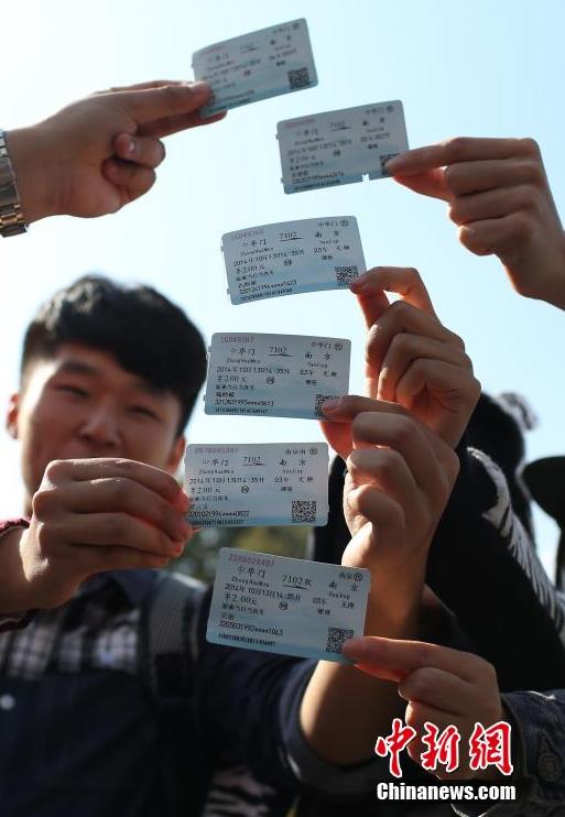 10月13日,市民展示在中华门火车站上车的车票。从10月14日凌晨起,拥有78年历史的南京中华门火车站将停止办理客运业务,连日来市民蜂拥而至,用乘坐客车的方式告别这座老牌火车站。南京中华门火车站于1935年4月随江南铁路的建成而同步投入使用,是中国著名的近现代铁路历史建筑。中新社发 泱波 摄