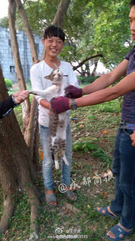 10月15日,浙江温州江心屿景区内,四五名男女将一只猫咪悬吊树上,一女子手握美工刀,竞以活剥猫皮为乐,可怜的猫咪发出阵阵撕心裂肺的凄厉叫声,令人胆战心惊。一参与活剥猫皮的男子说:“是我们捕获的野猫,肉好吃的很”。对此,有网友谴责他们称:虐待小动物,太没人性了!