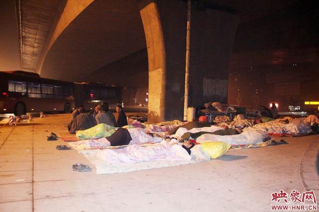 10月20日,郑州迎来一阵秋雨,夜里的气温在15℃上下徘徊。晚上22点30分左右,在多个立交桥下,记者看到了几十名农民工自带铺盖在桥下过夜,有的只在地上铺了一张凉席,被子也非常单薄。