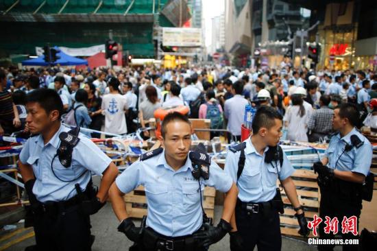 中新社香港10月23日电 香港违法占领行动进入第26天,香港警方23日表示,九龙旺角被非法霸占的道路是一个高风险地区,形势十分险峻,冲突与罪案一再发生,暴力冲突事件更有升级趋势,严重影响公共安全,破坏公共秩序,正步向暴乱的边缘。