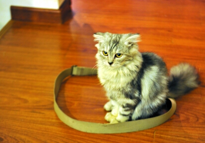 首先,按照网友提供的教程,记者用背带在地上围成一个圈。很快,这个圈吸引了一只猫的关注,只见它缓步走近,先用鼻子闻,然后用前爪不停地挠,接着,这只谨慎却又好奇的猫走进了圈中,并顺势端坐好,大概5分钟后,这只猫离开了圈。