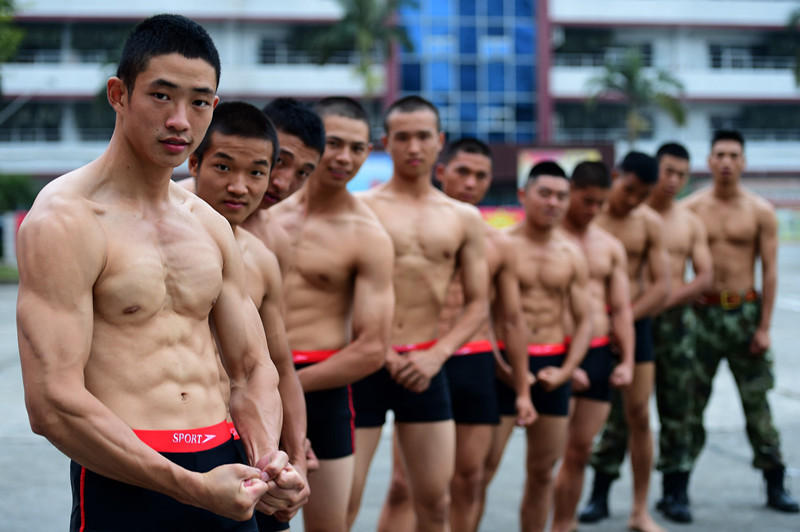 关键词:广东武警老兵向新兵秀肌肉 武警健美达人秀 广东武警
