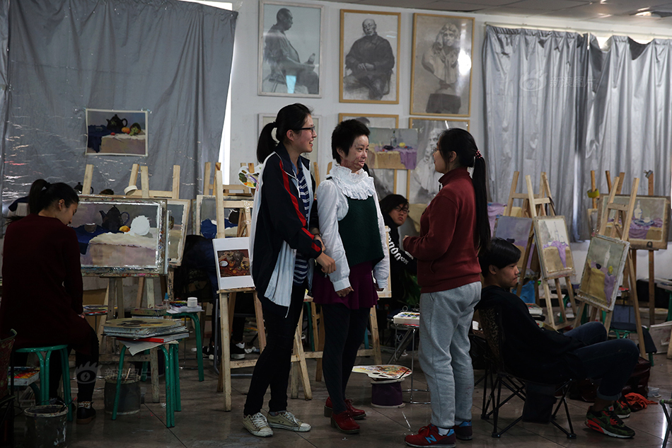 在画室里,周岩很快和同学熟悉起来?;业睦鲜λ担?ldquo;免费接受周岩来学习,是想帮助她接触更多人,锻炼手部和腕部机能,没想到她在绘画上还挺有天分。”