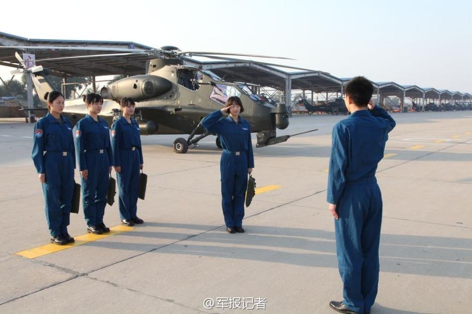 据军报记者微博10月29日报道,中国陆航武装直升机飞行员中的巾帼英雄们,近日在演练中精彩亮相!经过严格考核,她们正式进入陆航战斗序列。这批女飞行员1年前从空军部队选调到陆航,平均年龄24岁,均为空军航空大学本科以上学历。图片来源:军报记者微博