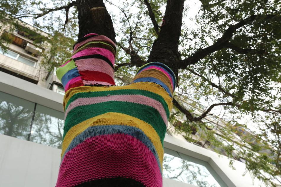 2014年10月30日,沈阳气温骤降,路边的大树也“穿”上了秋裤,还是彩虹色的。这些被彩虹色的毛线布包裹起来的大树,显得格外迷人,过往路人眼前一亮。据悉,给店门前3棵大树穿上彩色秋裤的店家为了美化店面门口的街路,同时也给老顾客做个“路标”,所以为大树穿上了秋裤。