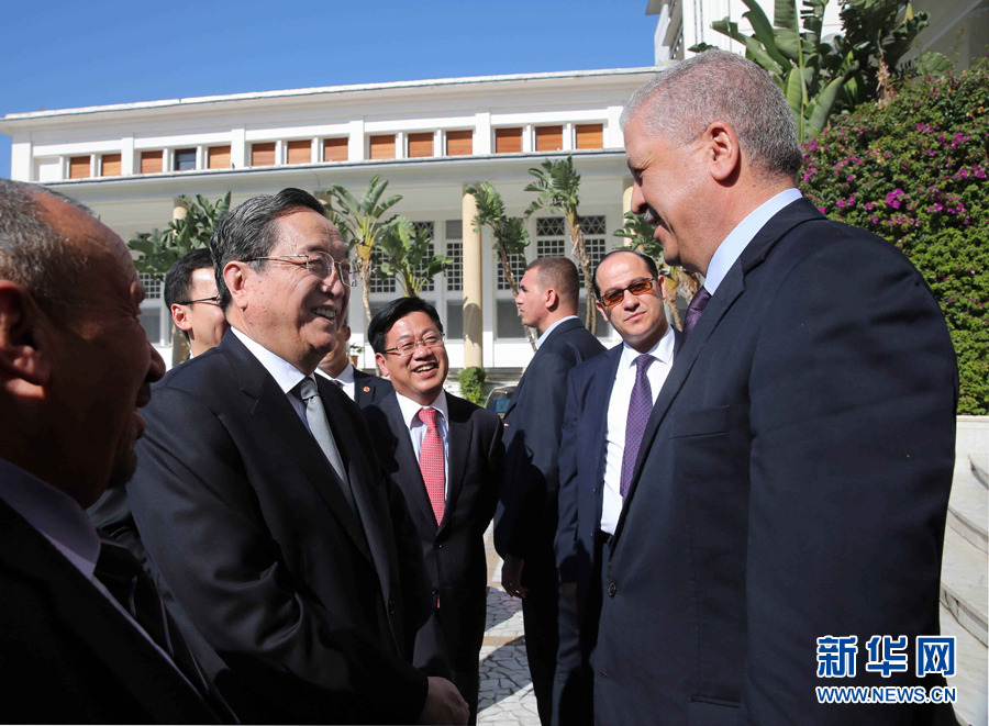 11月2日,正在阿尔及利亚进行正式友好访问的全国政协主席俞正声在阿尔及尔会见阿总理塞拉勒。 新华社记者刘卫兵摄