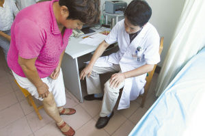 保洁员胡大姐身患静脉曲张、滑膜炎等多种腿病,但由于家庭经济条件有限,一直没有得到更好的治疗。8月25日,河北以岭医院免费为胡大姐治疗腿病。资料图片