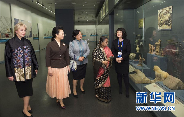 彭丽媛邀请出席加强互联互通伙伴关系对话会的部分外方政要夫人参观首都博物馆