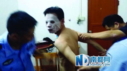 嫌犯叶某国在珠海被抓时,正在若无其事地做面膜。南都记者 罗煜明 翻拍