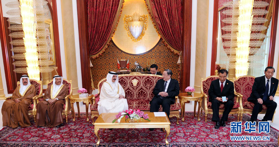 11月6日,正在巴林进行正式友好访问的全国政协主席俞正声在麦纳麦会见巴林国王哈马德。 新华社记者 张铎 摄