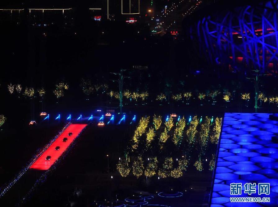 11月10日晚,出席亚太经合组织领导人非正式会议的经济体领导人和代表车队抵达北京国家游泳中心“水立方”。当晚,2014年APEC领导人欢迎宴会在北京国家游泳中心“水立方”举行。 新华社记者 公磊 摄