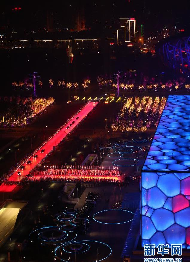 11月10日晚,出席亚太经合组织领导人非正式会议的经济体领导人和代表车队抵达北京国家游泳中心“水立方”。当晚,2014年APEC领导人欢迎宴会在北京国家游泳中心“水立方”举行。 新华社记者 金立旺 摄5