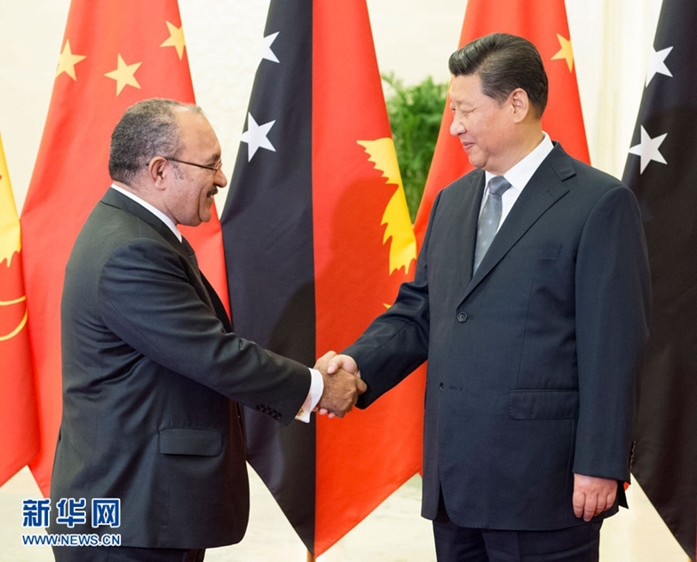 11月10日,国家主席习近平在北京人民大会堂会见巴布亚新几内亚总理奥尼尔。