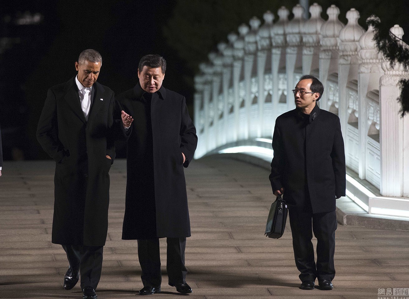 习近平与奥巴马夜游中南海 散步瀛台桥(组图)