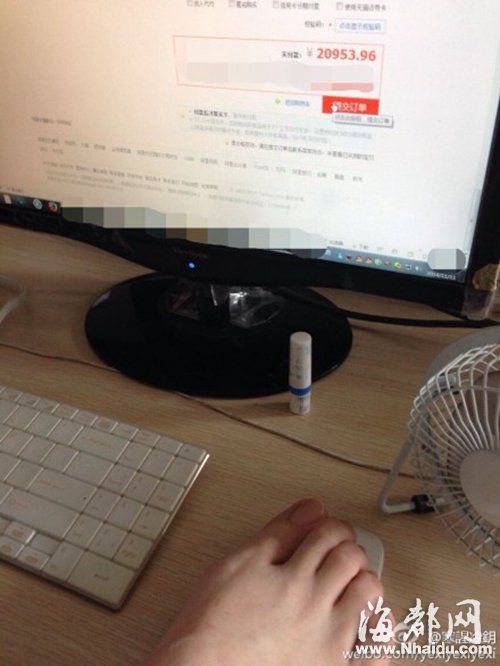 昨天下午两点多,不少白领偷偷在办公室刷淘宝时,突然被网友“寒謃冷鈅”发的一张图片“亮瞎了眼”:电脑屏幕前,一个人用脚操作鼠标抢单,网购订单已超两万元。