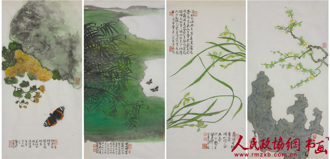 陈佩秋 四君子图 设色纸本镜心66×33cm×4