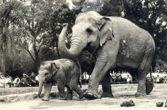 1953年6月,越南国家主席胡志明通过越中友协赠送给毛主席一对亚洲象,雄性“阿吐”,雌性“阿邦”。这一对亚洲象曾参加过越法奠边府战役。当时正值雨季,道路十分泥泞,士兵们行走困难,坦克和装甲车也难以开动,而大象发挥了得天独厚的自身条件,出色地完成了运送物资的任务。1960年越南国家主席胡志明再次送给中国一头21岁的雌性亚洲象“伊龙”,饲养在广州动物园。
