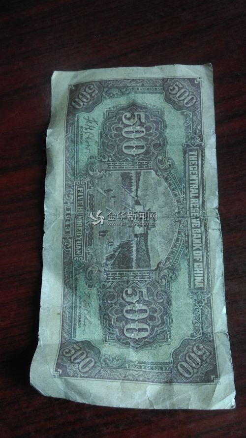 应大爷这张500元大钞,是民国三十二年(1943年)印制的。