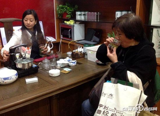家住北京石景山区的崔世平老人是资深茶友,以前去陕西旅游买了些陕西茶,回来品尝后,就喜欢上了陕西茶。这次从媒体上看到陕西茶城开业的消息,他专门到茶城品茶、购茶。经过反复品尝,终于在午子绿茶的店里买到了当年他买的那款茶。老人告诉记者,以前只知道陕西历史文化悠久,不知道陕西还有好茶,这次在茶城了解后,发现陕西不但有绿茶,还有茯茶和红茶,并且口感非常好,以后他会带着茶友们来品尝陕西茶。