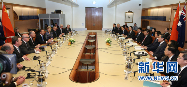 阿博特表示,今天对澳大利亚是具有历史意义的一天。澳中建立了全面战略伙伴关系、实质性结束两国自由贸易协定谈判,这将为两国创造更大机遇、更多利益。中国改革开放使几亿人摆脱贫困,这是人类历史上最伟大的一个进步。中国繁荣富强对世界意义重大。澳大利亚愿意做中国可靠的合作伙伴。