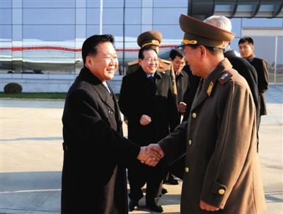 17日,朝鲜平壤,金正恩特使崔龙海(左)从机场启程访问俄罗斯。