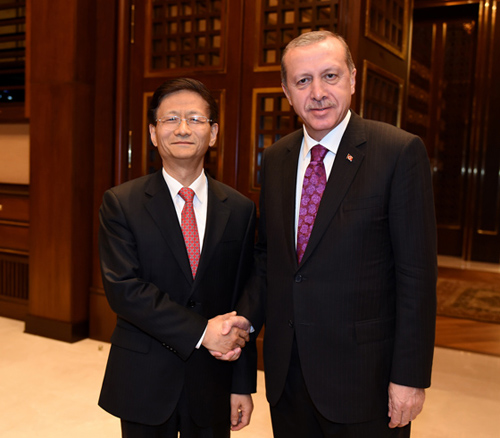 土耳其总统埃尔多安11月18日在安卡拉会见习近平主席特使、中共中央政治局委员、中央政法委书记孟建柱。