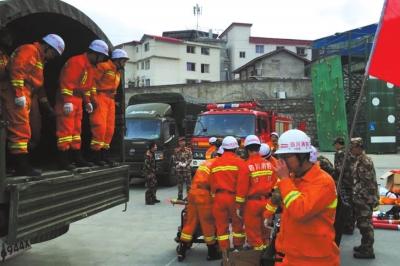 甘孜州消防支队地震救援队完成集结,奔赴震中。图 CFP