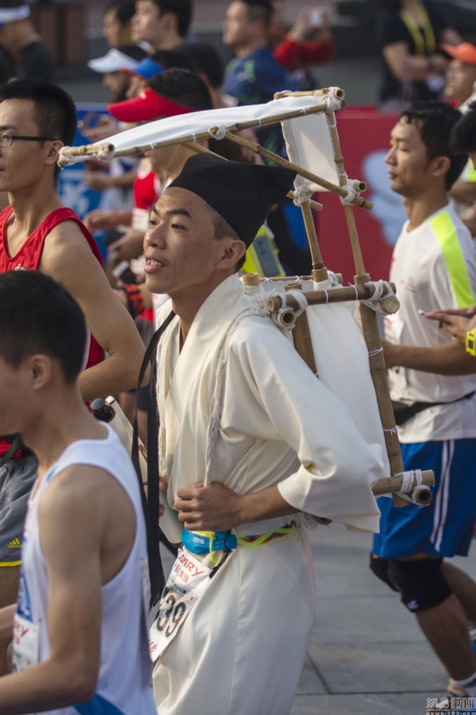 2014年11月23日,上午8时,2014广州马拉松鸣枪开跑,来自40个国家和地区的20000名参赛选手开跑。大批参赛者上演cosplay秀。文信/东方IC