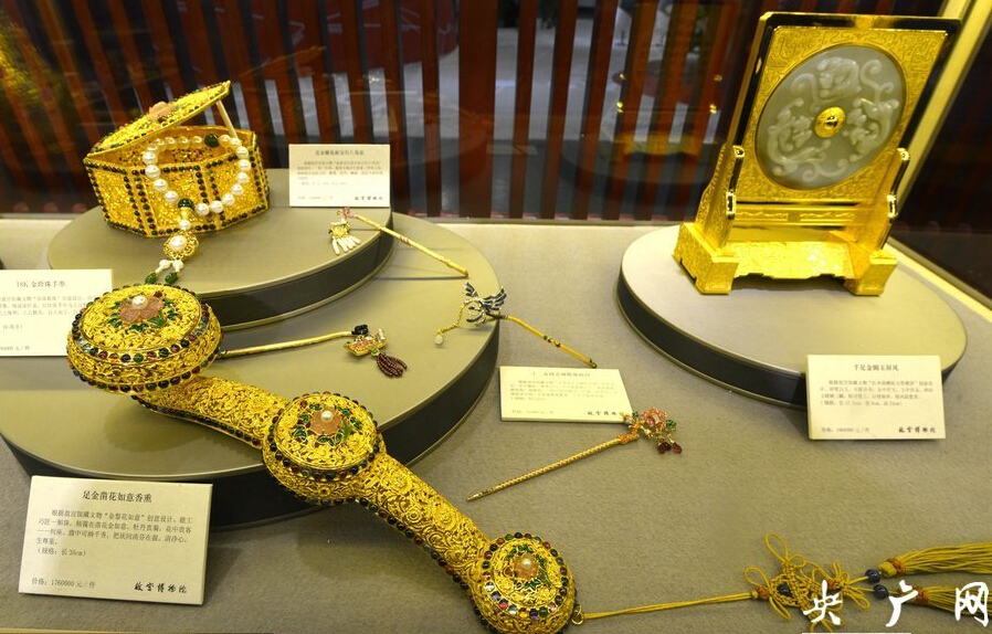 2014年11月24日,2014博物馆及相关产品与技术博览会在厦门举行,在北京故宫博物院展区,“千足金圆玉屏风”、“足金嵌翠玉圆粉盒”、“足金凿花如意香薰”等一些根据故宫馆藏文物制作,高达百万价值连城的文化产品让市民大饱眼福。