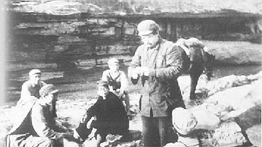 任弼时在杨家岭中央青委机关听取汇报并参加讨论会。