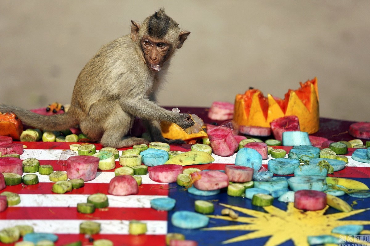 泰国庆祝猴子自助餐节 2吨美食犒赏馋嘴猴(图)